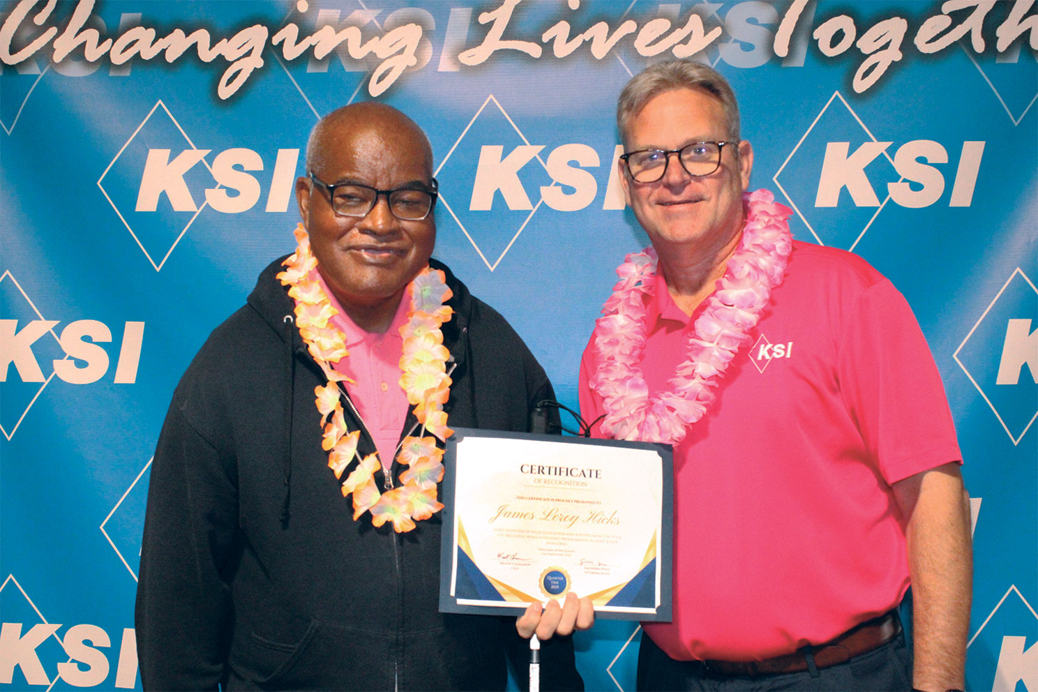 As employee of the quarter, Hicks’s name has been added to a permanent plaque at KSI and he will be given a plaque to take home. He also receives a $50 gift card or prize, a photo displayed on the Participants of the Quarter recognition board at KSI’s Milford center, a KSI News feature, an automatic invitation to the KSI Annual Dinner as well as a feature in the Annual Dinner program, and more.