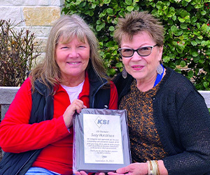 Photo Caption: KSI Director of Community Relations, Alicia Hollis (right) was excited to present a “KSI Champion” plaque recently to Suzy Hutchison, Sales Representative for Sharp Energy. KSI is thankful to Mrs. Hutchison for sharing KSI’s passion for enriching the lives of adults with disabilities, as well as her outstanding and consistent support of KSI.