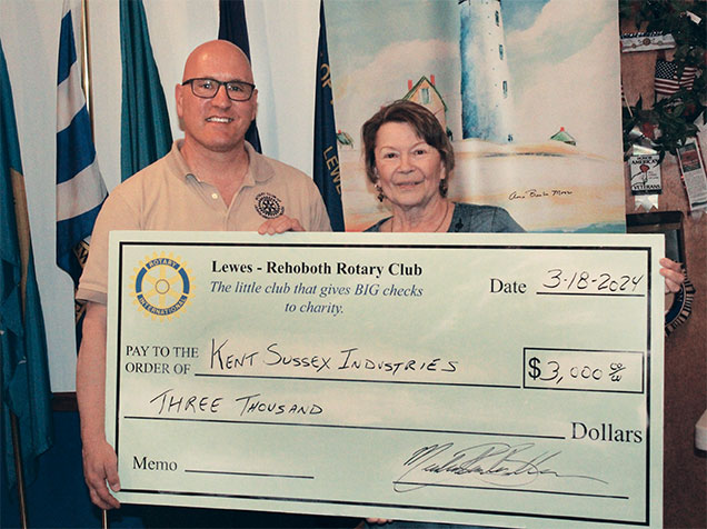 So much gratitude to Lewes-Rehoboth Beach Rotary Club's members and club President Dr. Michael Bellerose (left) for presenting KSI Director of Community Relations Alicia Hollis with a $3,000 grant to help us update equipment for our Nutrition Services.